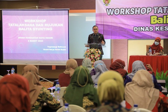 KLIKSURABAYA.CO.ID -Sebagai upaya dalam menurunkan prevalensi stunting di Kota Kediri, Dinas Kesehatan Kota Kediri menggelar Workshop Tatalaksana dan Rujukan Balita Stunting, Kamis (2/3). Dalam sambutannya, dr Fauzan Adima, Kepala Dinas Kesehatan Kota Kediri menyampaikan tujuan diselenggarakannya workshop ini ialah untuk memberikan wawasan terkait sistem rujukan dan tatalaksana kasus stunting di Kota Kediri kepada tenaga kesehatan. Menurutnya, sampai saat ini kasus stunting masih menjadi fokus perhatian Pemerintah Indonesia yang harus segera ditangani.